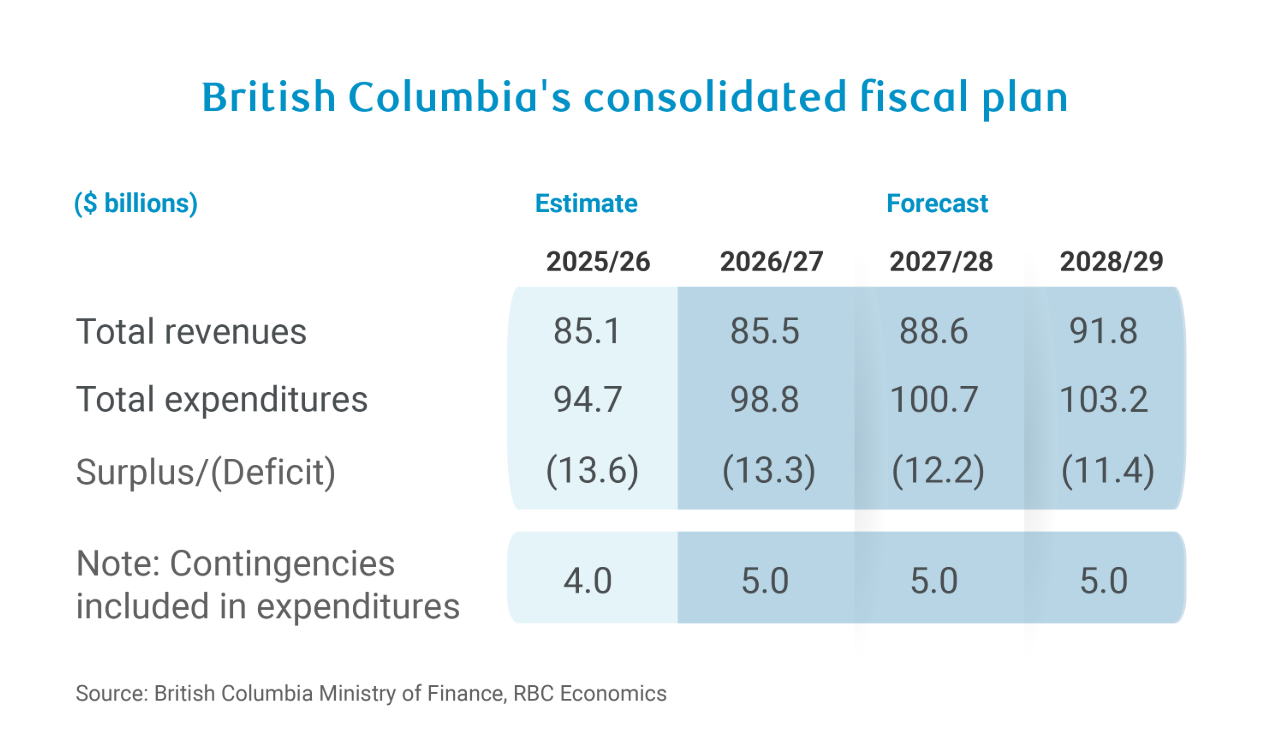 The fiscal plan projects the $13.3 billion shortfall for 2026-27, followed by deficits of $12.2 billion in 2027-28 and $11.4 billion in 2028-29. While the government forecasts the deficit-to-GDP ratio will decline from 2.9 percent in 2026-27 to 2.3 percent by 2028-29, the budget does not project a return to balance within the fiscal plan.