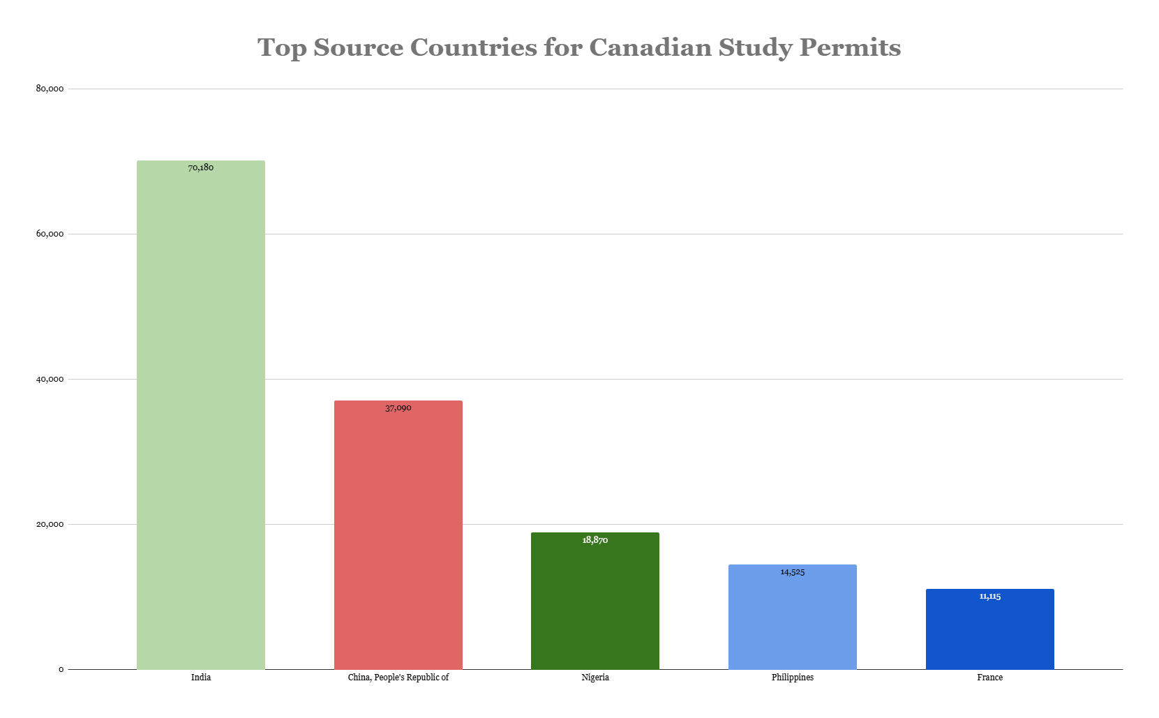 However, despite these decreases, Indians were still, by far, the biggest group to receive study permits. So far, a little over 70,000 Indians have received study permits for 2025, followed by China at 37,000, Nigeria, the Philippines, and France. India, so far, makes up about a quarter of all granted study permits for this year. Last year, they made up over a third.