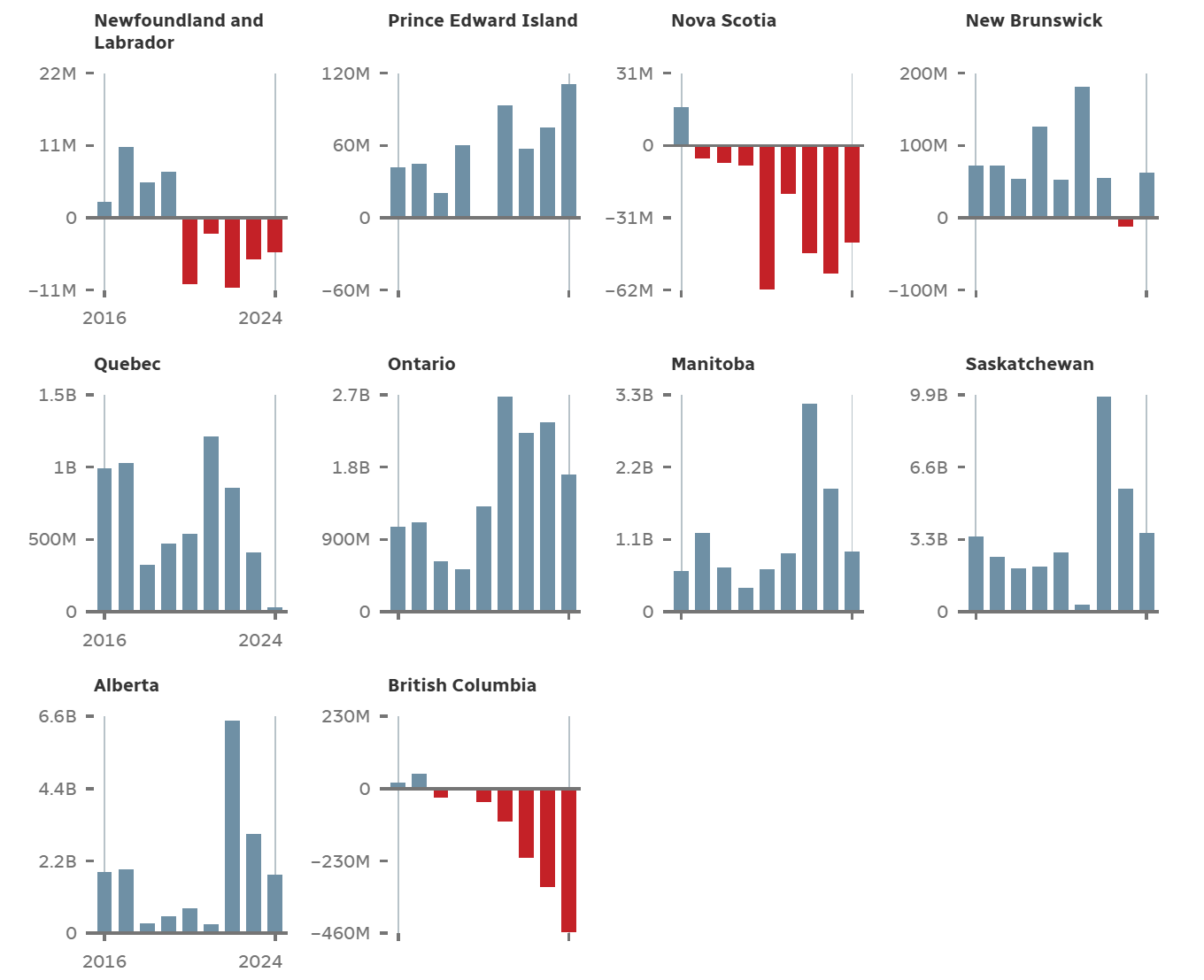 Screen-based production, a bellwether for BC’s services economy, shows similar contradictions. While the province remains a major hub, Coastal Front reported in May that tax credit disbursements for film and television surpassed $1.5 billion in 2023/2024 — a record payout that reflects the lag between approvals and reimbursements — even as certified production volumes fell from the previous year. The absence of consolidated public tables and year-over-year comparisons has made it difficult to assess whether rising subsidies are delivering proportional benefits during a slowdown.