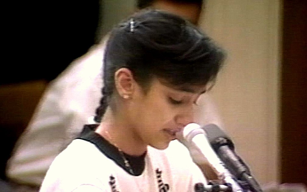 (15-year-old “Nayirah” giving her testimony to the United States Congressional Human Rights Caucus on October 10, 1990.)