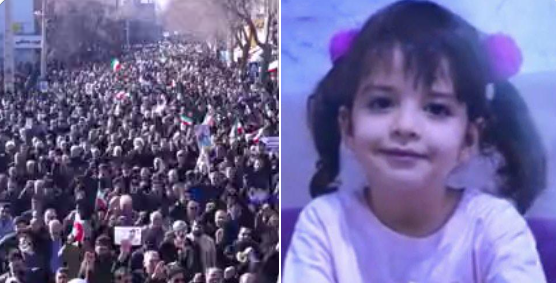 (In Iran’s Kermanshah province, large crowds turned out for the funeral of Melina Asadi, a three-year-old girl who was reportedly shot and killed while on her way to a pharmacy with her father, according to local reports.)