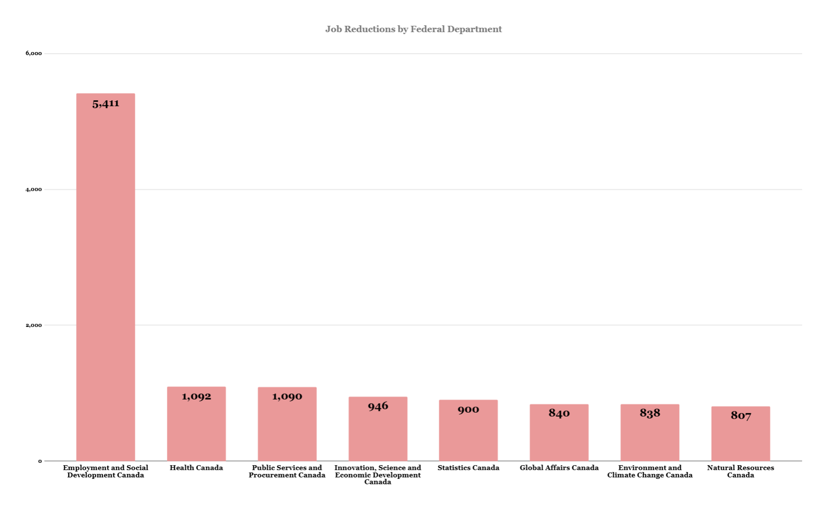 According to a report from the federal government, in December 2025 and January 2026, there were around 22,200 employees and 900 executives given letters of “affected or at-risk status” regarding their positions. This does not mean that these jobs are going to be immediately cut, but rather notifying the worker that their job is under review and may be eliminated. For example, in the finance department, the government is planning to cut 79 employees, but 82 employees received affected or at-risk letters.